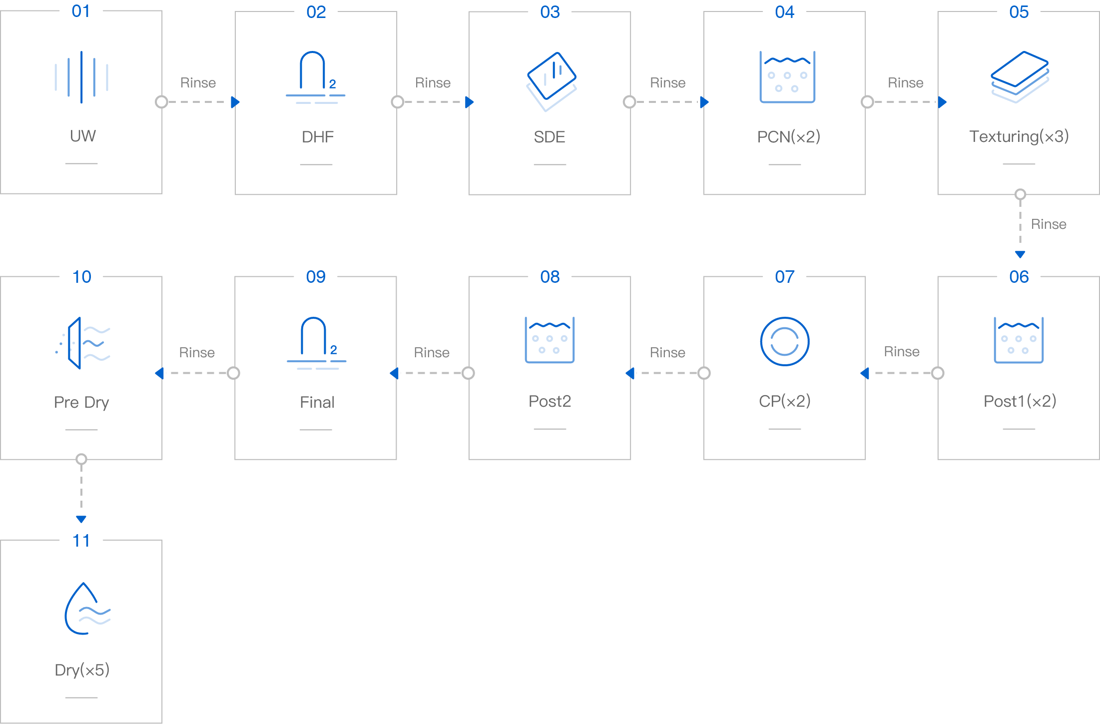 TexturingEquipped with two kinds of pre-clean process:Precln#1(O?)→ ?SDE?→ ?Precln#2(H?O?)
