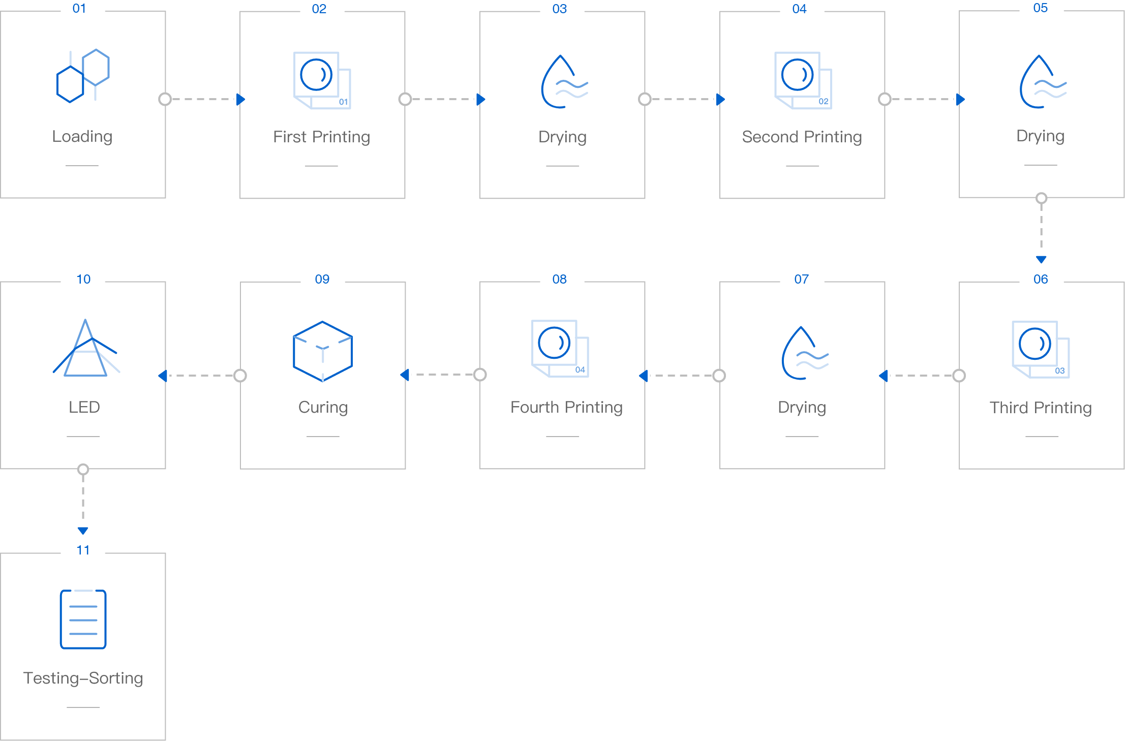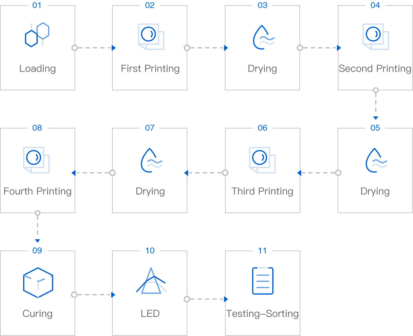The equipment is utilized for screen printing test, curing and LED of the HJT cell.